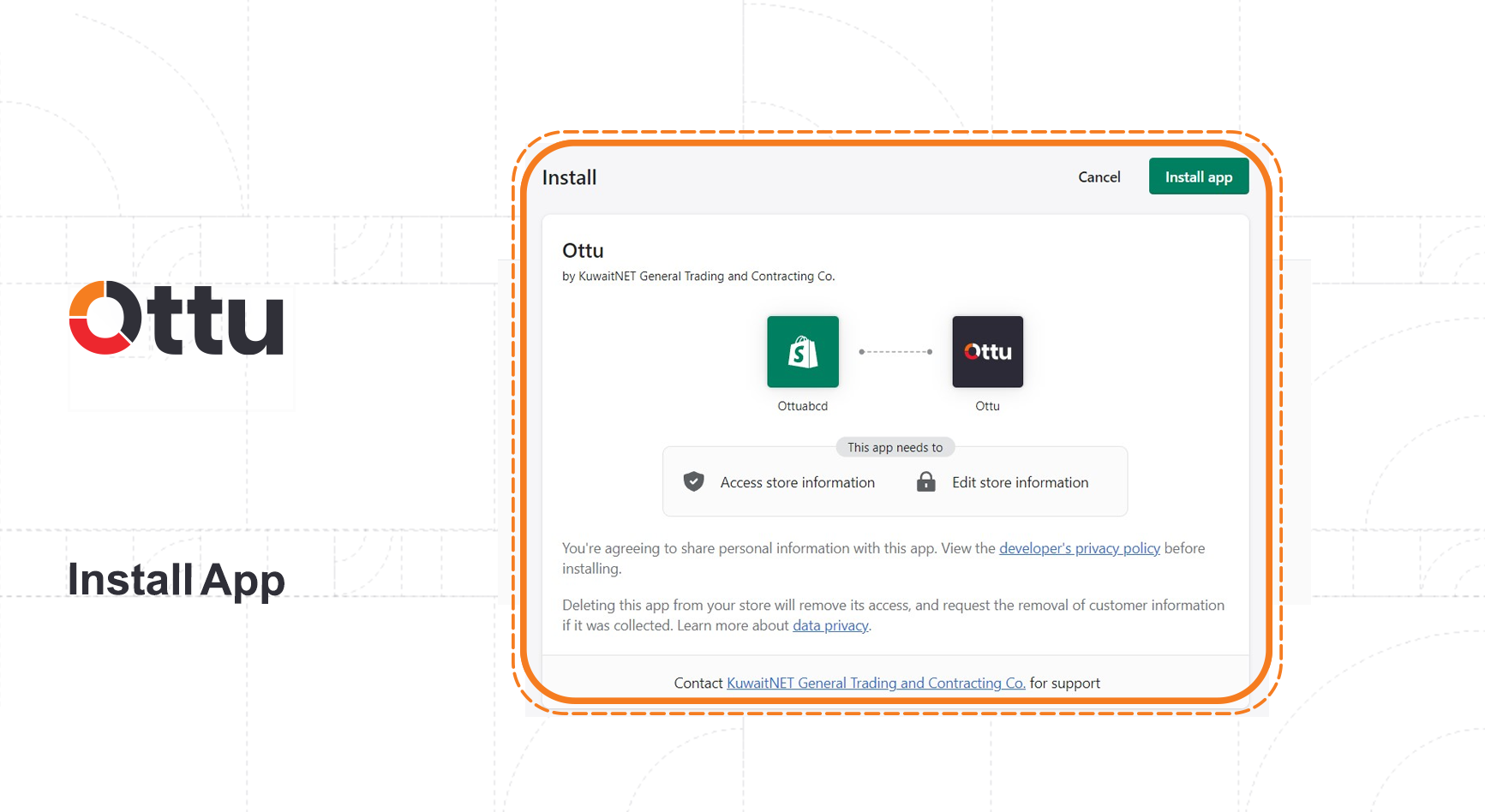 Upon clicking `Install app`, you will be directed to the **Ottu’s Page**.